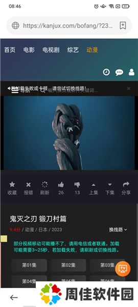 6、软件只提供搜索功能,并不提供播放功能,这里小编以鬼灭之刃最新章为例子;