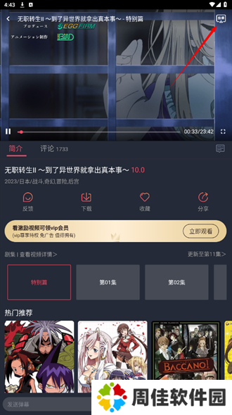 1、首先打开在本页面下载的黑白弹幕app,进入界面后选择一个自己想看的番剧,切换到播放界面。