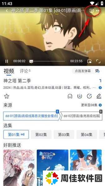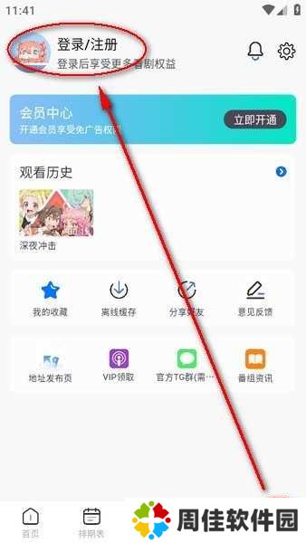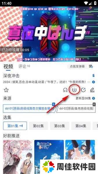 登录成功以后,选择要观看的动漫,比如深夜冲击,并点击下图所指的按钮;