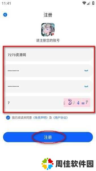 填写账号、密码,输入验证码,勾选同样用户协议,点击“注册”;
