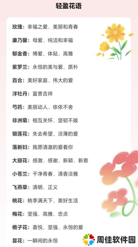 2、用户可以在光花语言功能中在线查看各种花语言百科全书。