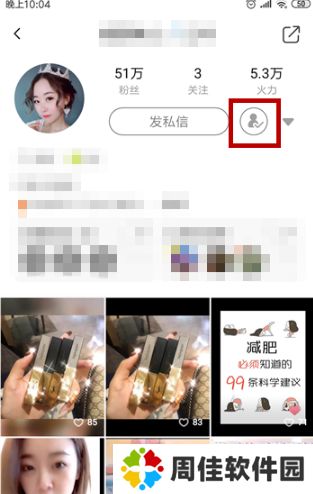 6.第六步,我们发现我们刚刚取消关注的人的界面,将会由已关注变成如图所示的关注按钮,