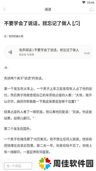 3、点击作者写的文章进进到文章阅读界面,在阅读界面中可以看到网友的评论、点赞和转发数目,假如你喜欢这个作者写的文章还可以收听该作者。