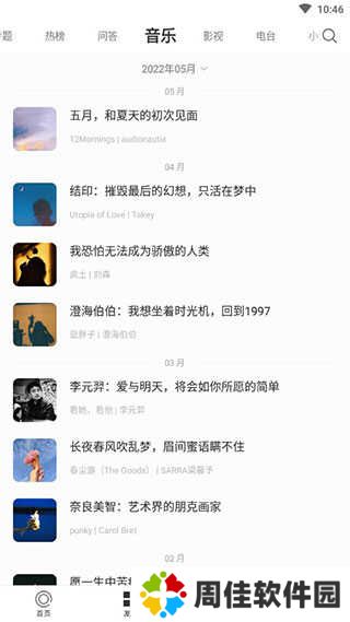 4、点击主界面下方音乐这个功能进进到音乐界面,在音乐界面中可以看到一些歌手的音乐 故事 ,假如你喜欢这个歌手还可以选择收听。