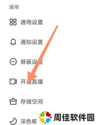 3、在通用这一项中,用户可以看到开通直播的选项,点击进入。
