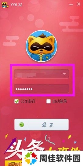 1.我们先输入自己的YY账号与密码登陆自己的YY账号。