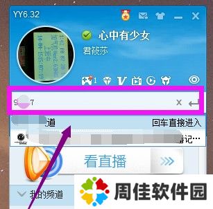 2.在进入你想要收看直播的房间,我们可以通过输入YY频道号码直接进入。