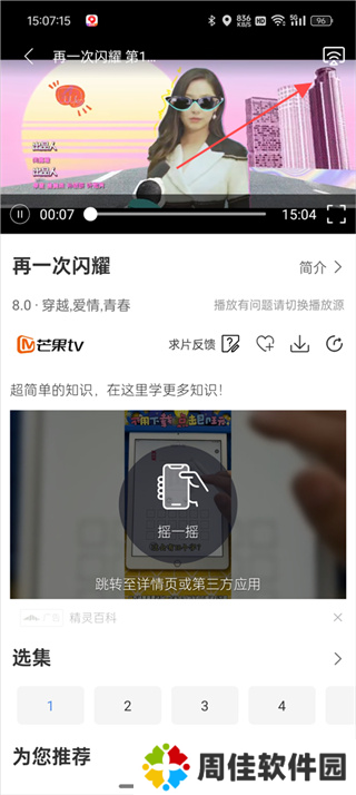 2、然后来到影视播放的页面中,在这里我们点击右上角的【投屏图标】;