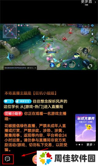 2、点击直播间左下角对话气泡按钮,将弹幕按钮开启后就能发送弹幕了;