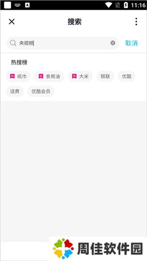 在打开的搜索页面中输入“央视频”,并按下手机键盘上的确定键(或回车键)