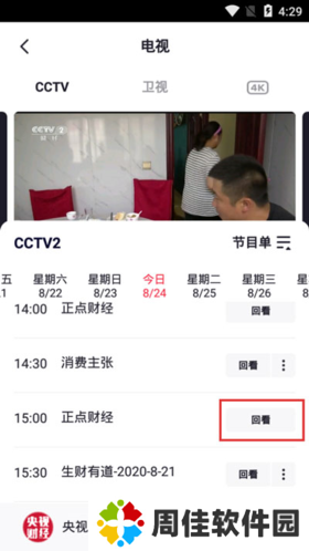 3、接着选择需要查看回放的日期,找到需要回看的时间点,选择【回看】即可。