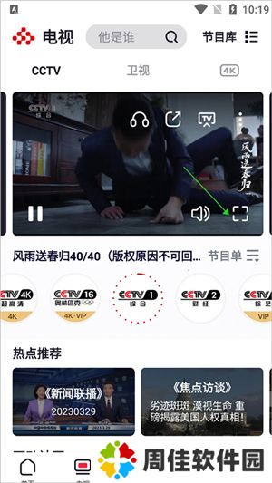 下拉页面后可以对当前用户收看的频道(目前指cctv1)中的精品节目进行快速回看,例如新闻联播、焦点访谈等cctv1经典热门的节目进行快速回看