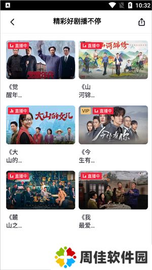 点击直播页面中的【剧在播】,可对央视热门电视剧进行24小时不间断播放