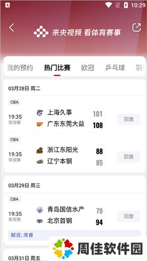 点击上图【热门赛事】,可以对赛事进行回放,或者查看自己预约的赛事