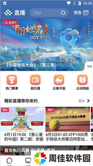 主题类直播方式可通过点击页面底部导航栏中的【直播】(下图绿色圈圈)进入直播页面,进入之后用户可以在线预约精彩体育赛事活动