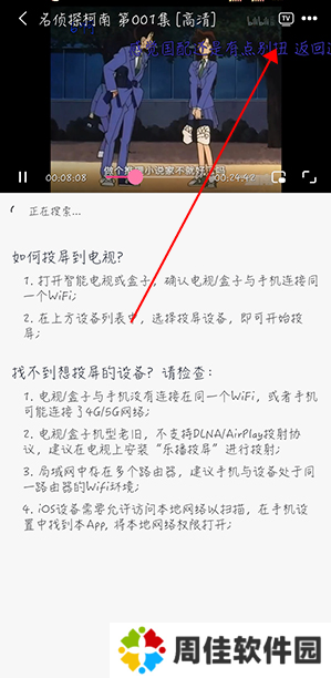 6、右上角的电视TV图标,点击可以搜索投屏设备。