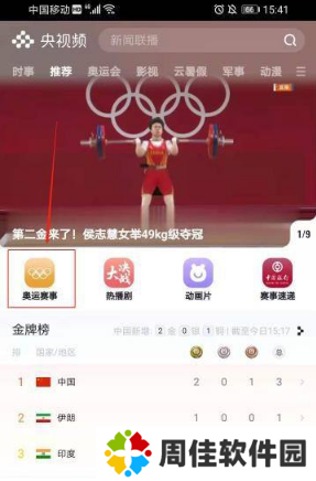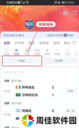 2、进入【奥运赛事】界面,点击【中国队】,筛选出中国队比赛。