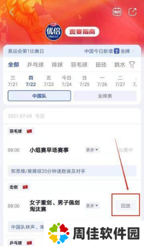 3、选择要观看的比赛,点击右侧的【回放】,即可进入直播间。