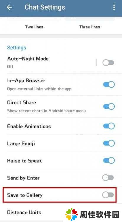 5、退出后再进入Chat Settings,在Save to Gallery的栏目点击取消。