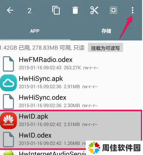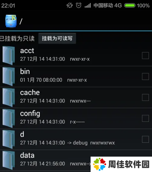 在RE文件管理器获取到了Root权限之后,点击进入该应用,然后点击选择“挂载为可读写”。