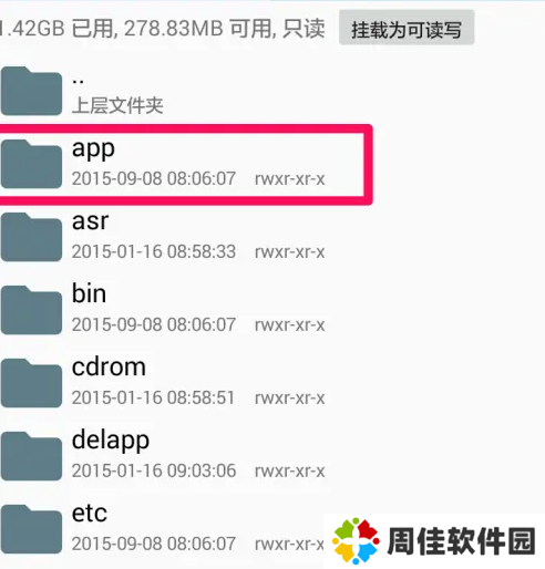 进入到re管理器的system文件夹以后我们可以看到app文件夹,同样的我们点击进入。