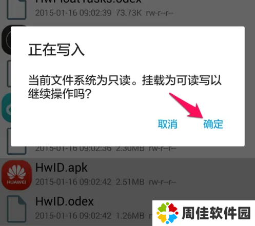 此时re管理器会提示当前文件系统为只读,挂载为可读写继续操作,我们点击确定就可以了。