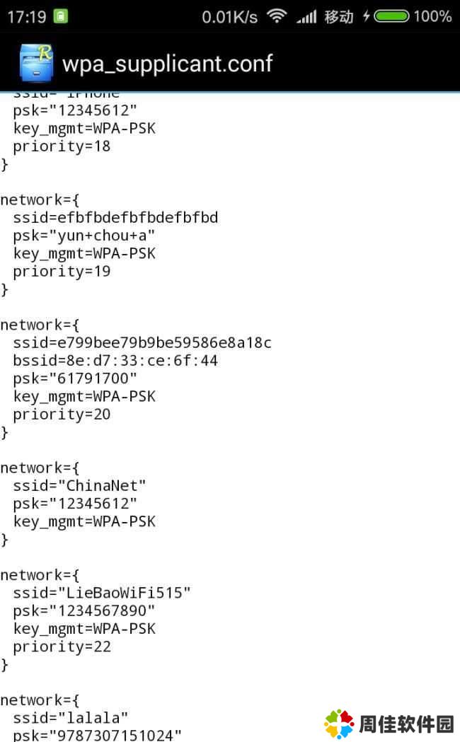 5.打开文件“wpa-supplicant、conf”就可对密码进行查询。