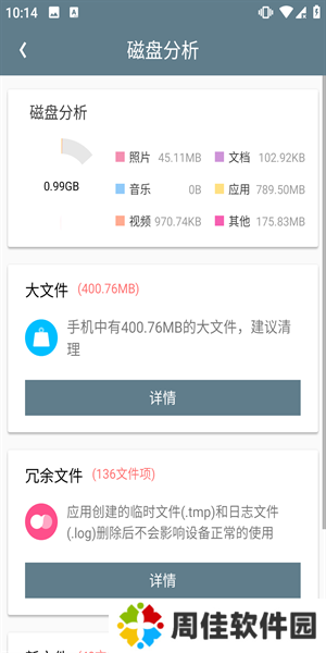 3.点击分析,软件会对文件进行磁盘分析,这里可以看见有400.76的大文件需要清理。