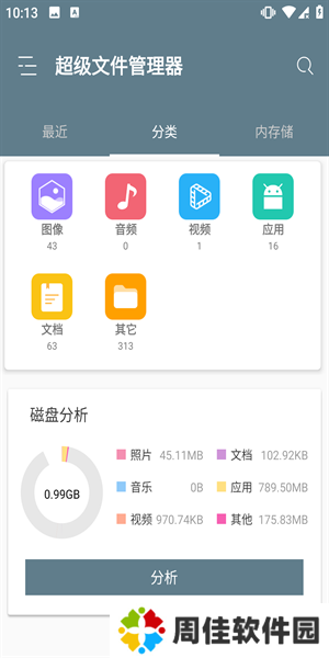 2.点击分类可以按照图像、音频、视频、应用等等来进行分类。