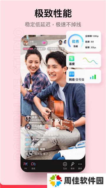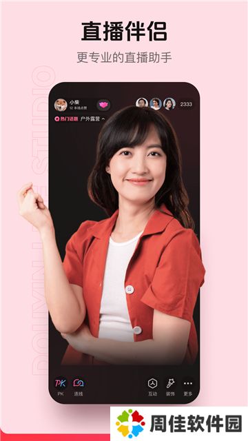 抖音直播伴侣软件内容1、现场互动:手机直播,大屏幕,高清视频效果,视频内容看起来更清晰。