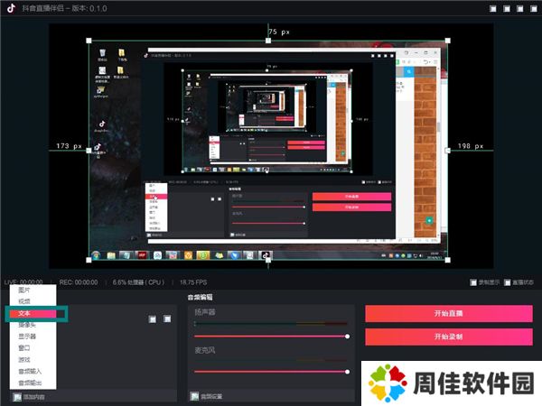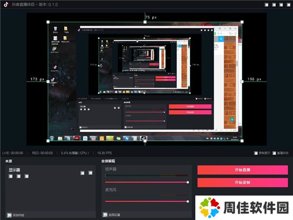 4、这个时候我们已经可以在抖音直播伴侣的监视器界面看到你的显示器画面了,下面我们可以进行一些个性化设置。