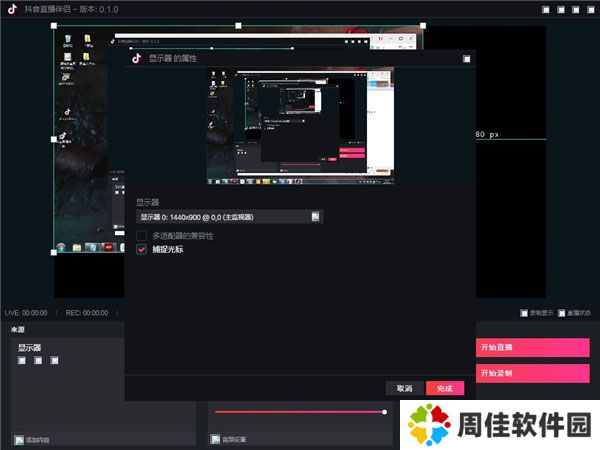 3、软件会检测到你当前的显示器,选择你需要直播的显示器,然后点击“完成”。
