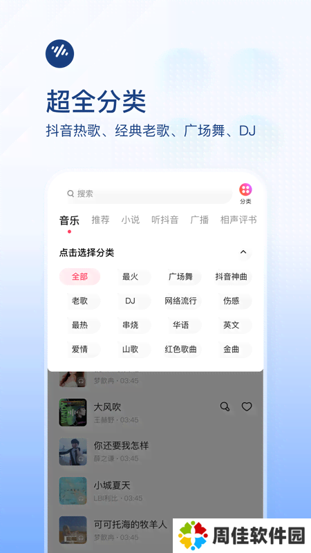 1、抖音热歌、经典老歌、广场舞、华语流行、轻音乐、儿歌,各种歌曲应有尽有。