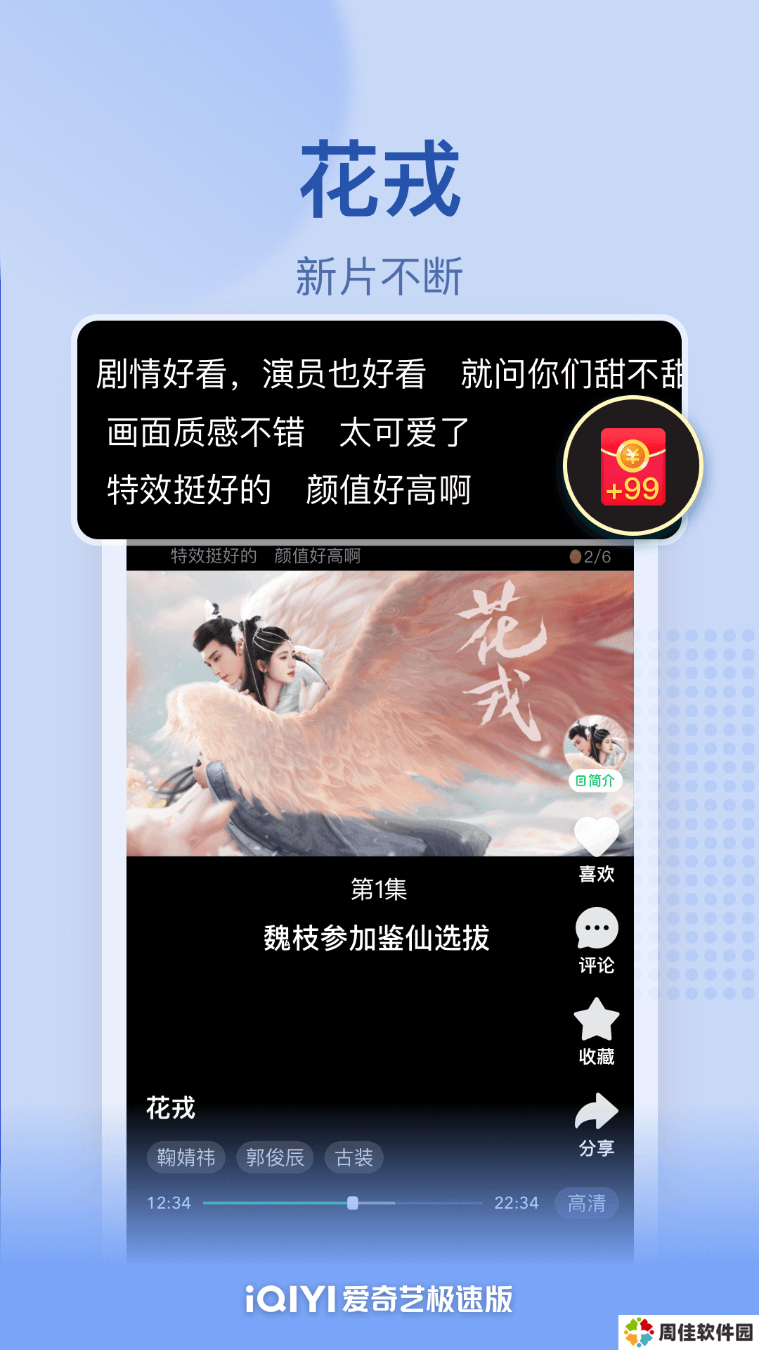 爱奇艺极速版app海量正版影视资源全集畅看,独播视频同步更新,画质清晰可调节,给用户极致观影体验。爱奇艺极速版高清追剧软件新片不断上线,首页天天精选优质影视推荐,轻松告别剧荒,感兴趣的小伙伴快来下载爱奇艺极速版app吧!