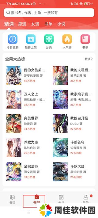 4、打开书城界面,这里有各种热门,用户自行探索;