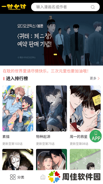 一耽漫画,为大家带来了超多好看的原耽漫画,你可以看到不一样的特色恋爱,超多帅哥等着你来发掘。每天都有不同的资源更新,让你可以开心的追漫,超过上万本完结漫画可以免费观看阅读。