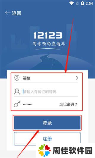 4、这边需要登录一下,选择自己驾考报名的省份,填写要查询的人身份证号和交管12123的密码。