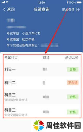5、之后,点击登录,登录之后,会跳转到成绩页面,显示以往考试记录的成绩。