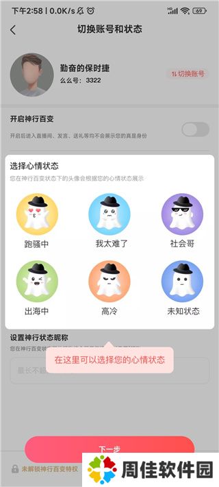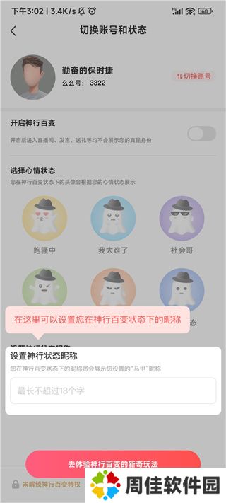 11、再往下还可以设置你在神行百变状态下的昵称;