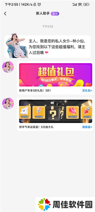 6、打开消息后可以看到现在新人还有超值礼包和幸运盲盒;