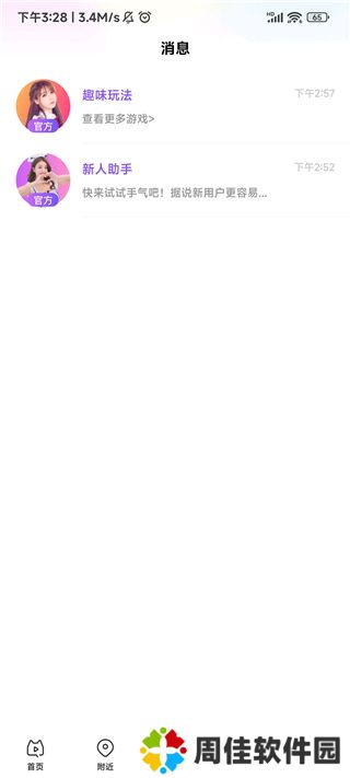 5、点击消息,这里有新人助手给新用户发来的通知信息,之后和主播的聊天也可以在这里找到;