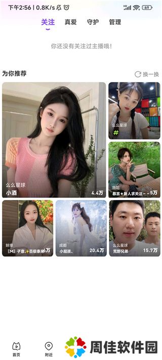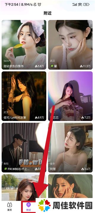 4、我们点击附近就可以看到自己附近的主播,点击进入他们的直播间观看;