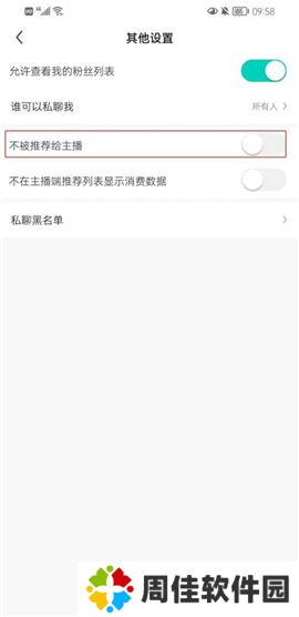 3、最后打开【不被推荐给主播】后侧的开关即可完成操作