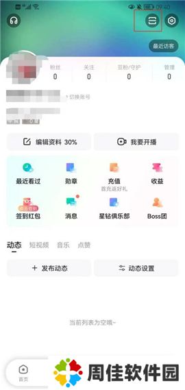 1、首先打开【酷狗直播】软件,选择【我的】点击右上角的的【设置】选项。
