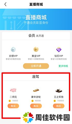 1、这里的坐骑其实是叫做【座驾】,在【直播商城】里就可以进行设置。