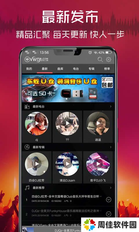 2、海量DJ舞曲专辑,流行、电音、串烧等高人气的DJ风格曲目全部整合,应有尽有。