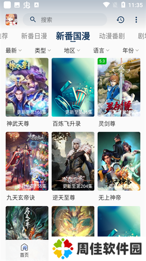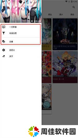 2、点开左上角将可以展开菜单栏,这里有一月新番、动漫分类、追番等列表;