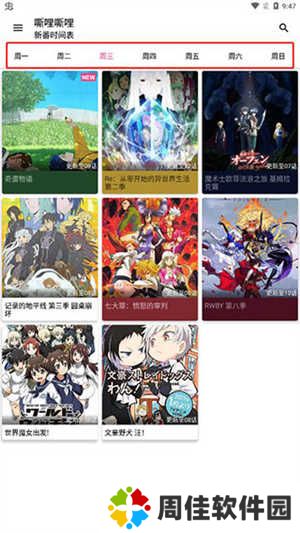 1、打开嘶哩嘶哩app出现的是每周动漫时间表,打开后将会自动定位到当前的日期,然后各位就可以知道今天所更新了哪些动漫;