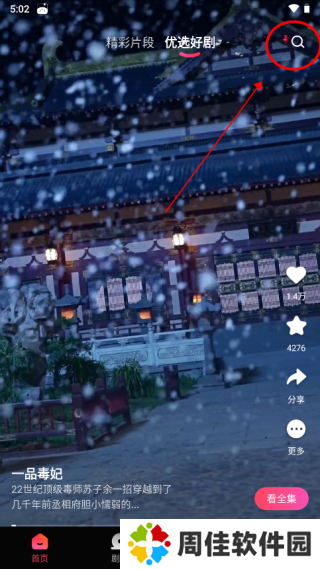 1、进入首页即可上下滑动切换视频,点击右上角搜索图标,可对短剧进行搜索;