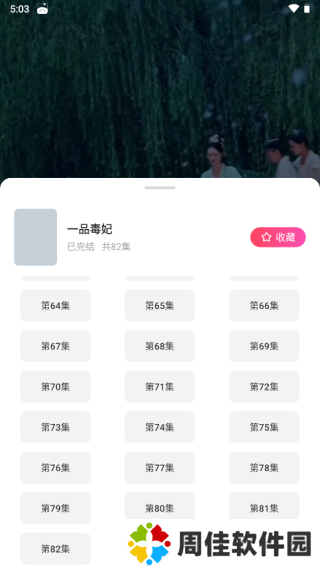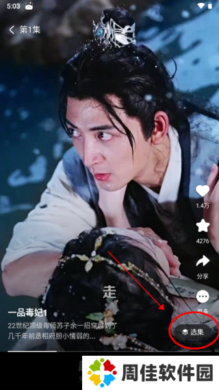 3、点击选集,可选择集数进行观看(软件会自动记住浏览历史,从你上次看过的地方继续播放);